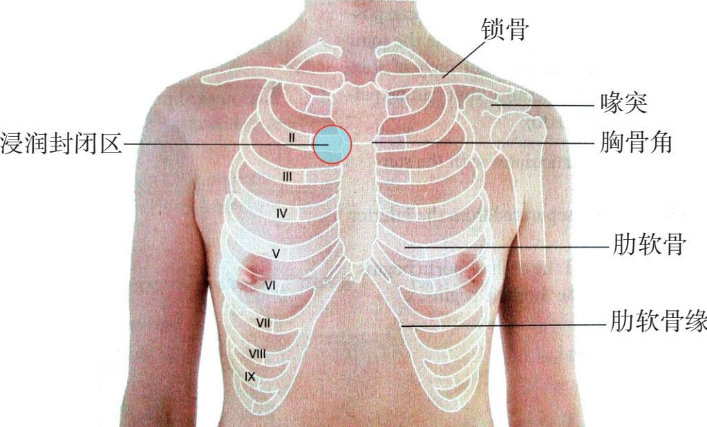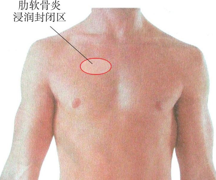 图4-10 肋软骨炎的穿刺和浸润封闭部位