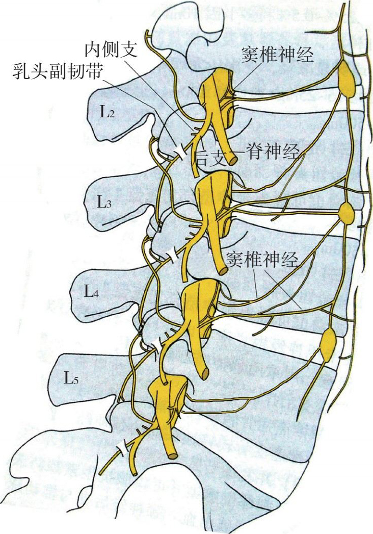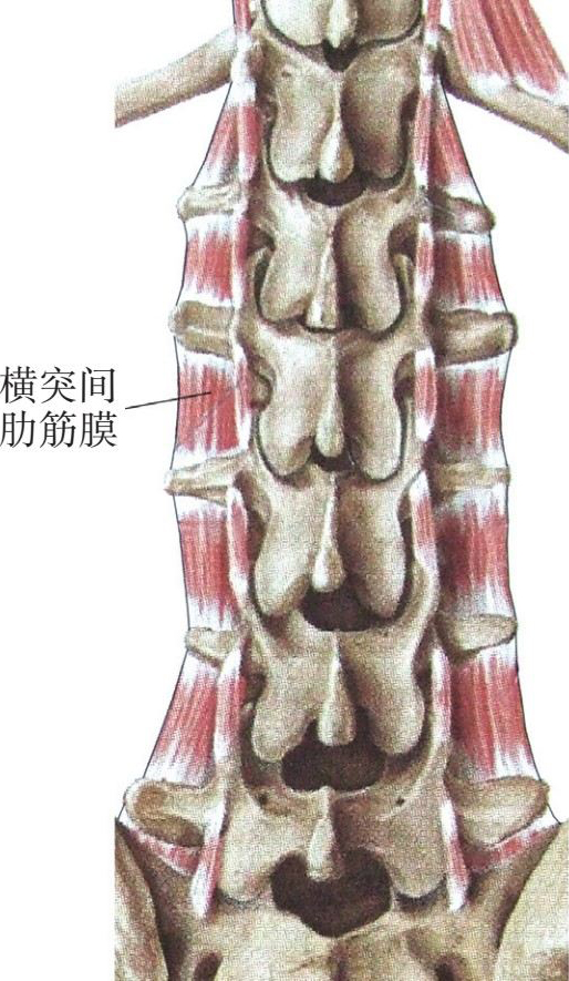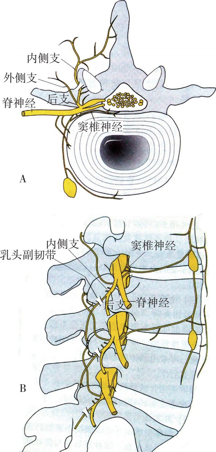 图4-12 胸脊神经根封闭穿刺部位与解剖关系