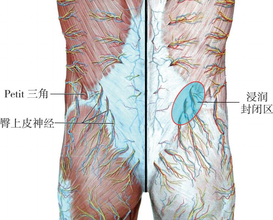 (2)腋后线处:在此阻滞能阻断外侧皮支和前侧皮支,但不能阻断后侧皮支。