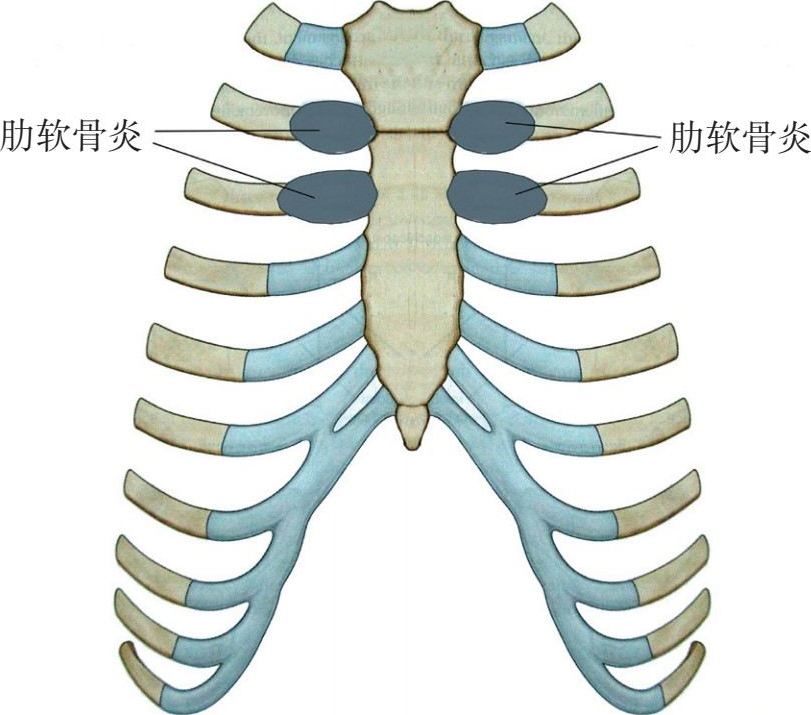 图4-9 肋软骨炎的好发部位为第2、3肋软骨
