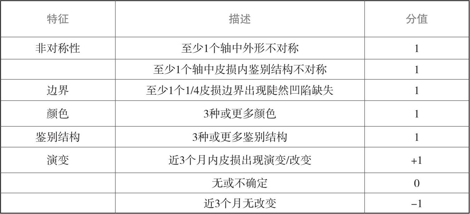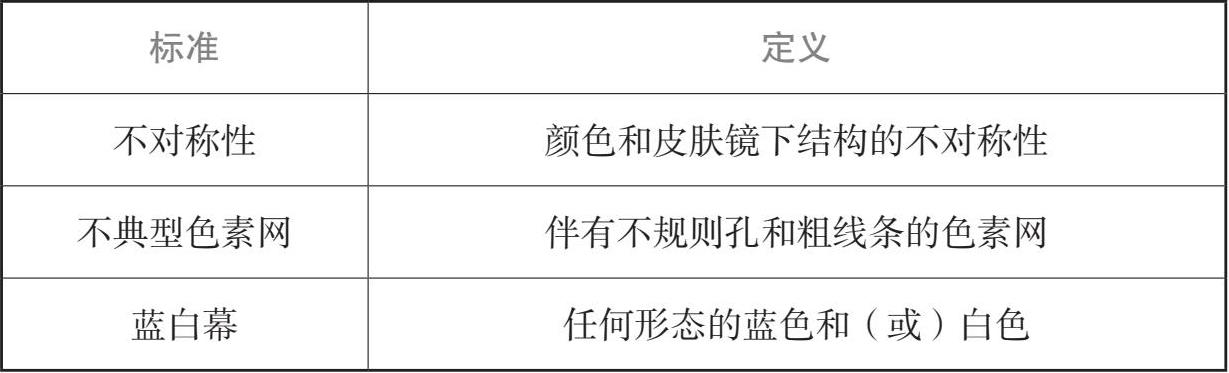 表1-5 皮肤镜ABC法 [14]