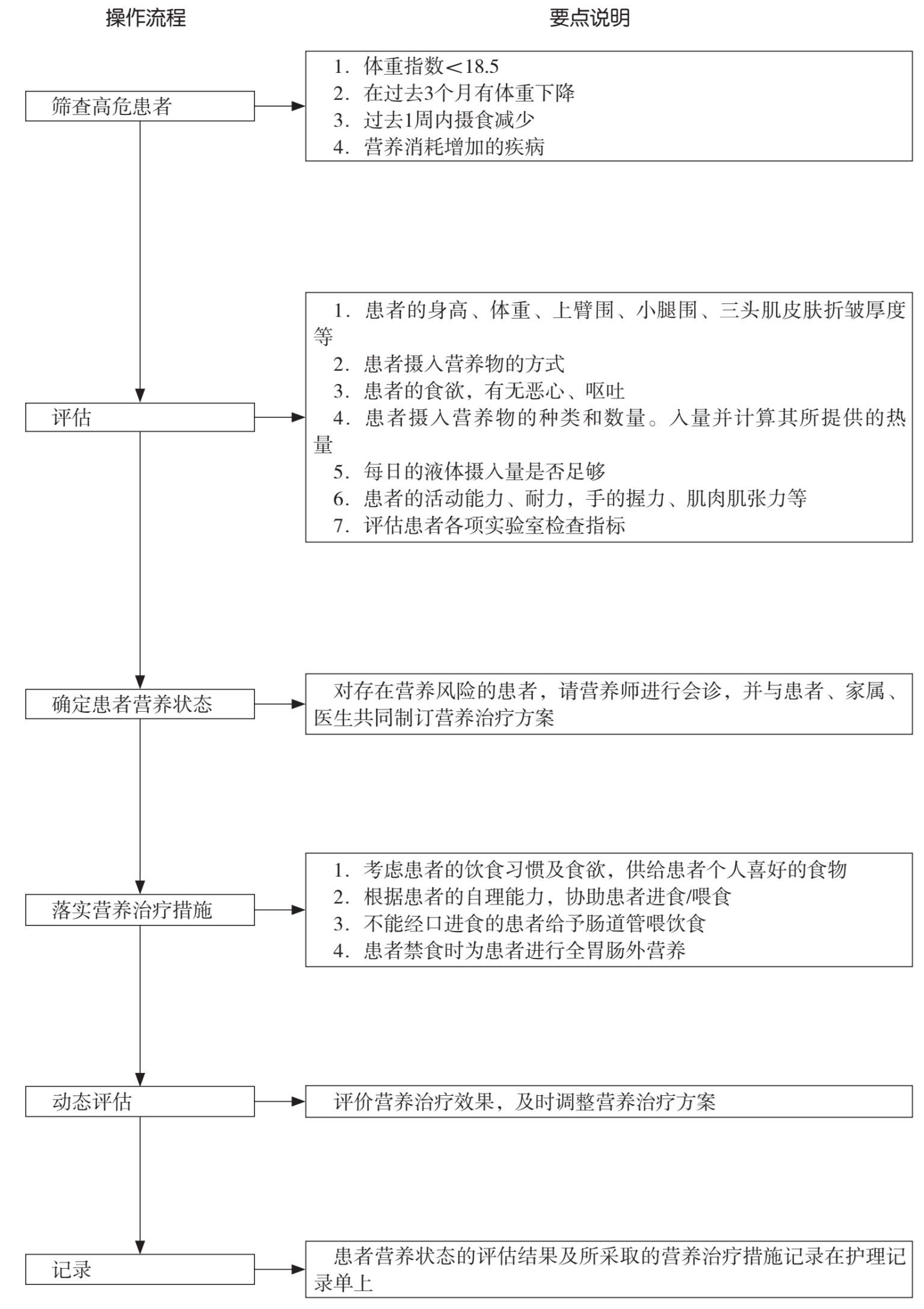2.护士掌握住院患者营养评估的内容和方法,并严格执行。