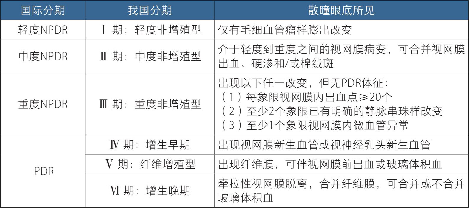 表1-1 我国2014年DR分期与国际DR分期