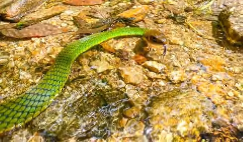 我们在制订观察计划时,可以通过检索各种工具书,确认要找的蛇类的栖息环境,在合适的地点、合适的季节及时间段开展搜索,会起到事半功倍的效果。以华南地区为例,如果想观察中国水蛇、铅色水蛇,需要在清明之后,前往水田、水库、鱼塘、湖泊等地进行调查;如果要找白唇竹叶青蛇、繁花林蛇、紫灰锦蛇等类群,则需要找到自然度较高的阔叶林环境。