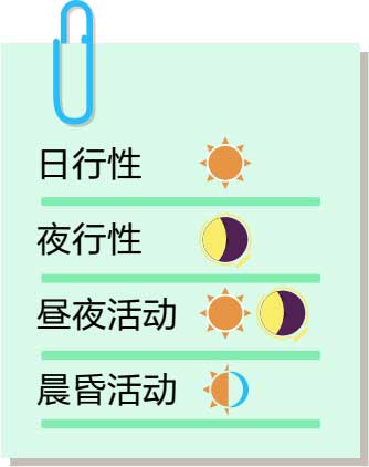 不同种类的蛇有不同的活动时间。有些蛇是日行性的,即它们在白天活动,如眼镜蛇和滑鼠蛇。而有些蛇则是夜行性的,如大多数蝮蛇和蟒蛇,它们在夜间活动,不但避免白天的高温,而且更能避开天敌,还能很好地把自己隐藏起来伏击猎物。