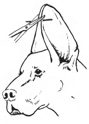 某些垂耳品种的犬,为了使耳郭直立,达到外形美观的目的,可以通过手术修整的方法来实现。个别情况下,为了修整破损的耳朵,也以此方法来解决。