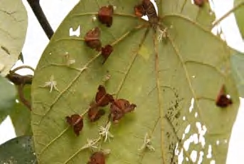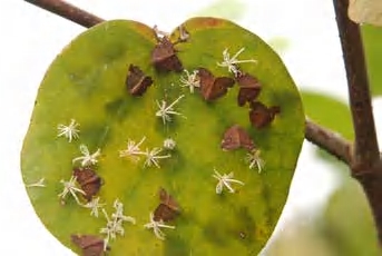 危害症状 │以成虫、若虫吸取寄主叶片及嫩枝汁液,使受害部位的叶片发黄或卷缩畸形,引发植物病害,影响植物生长,削弱树势。