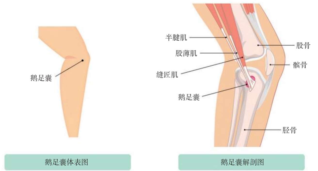 2)鹅足囊具有缓冲与润滑的作用,可防止鹅足肌腱与骨骼过度摩擦,造成损伤。