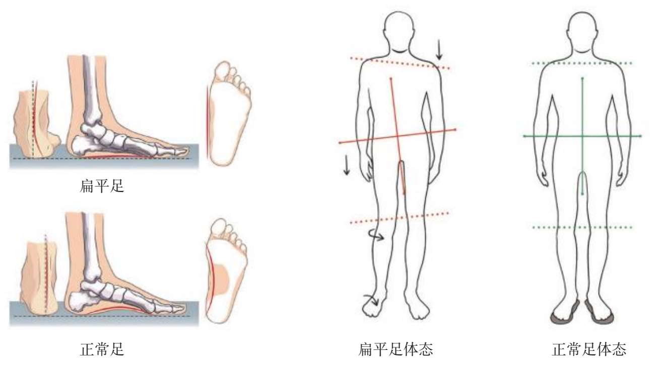 扁平足是指足部的纵弓塌陷,使得脚底几乎与地面平行。