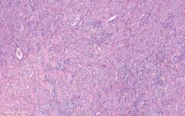 【诊断分子病理学】常见的遗传改变是复杂的染色体异常和TP53基因突变。常存在MET14号外显子的跳跃突变。可以发生KRAS和EGFR基因突变,但很少发生ALK基因重排。PD-L1在多形性癌中高表达(60%~90%),在梭形细胞区表达更强。