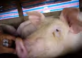 图1-1-10 观察猪只腹部脐疝