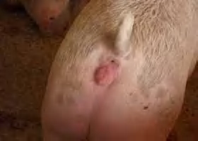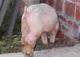 图1-1-10 观察猪只腹部脐疝