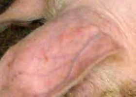 (3)口温 健康猪的口内温和而湿润,若口温偏低,多为寒证;口内偏冷而滑利,多为虚证;口温增高,多为热证。若口热而干燥,为里热化火,阴虚火盛,常见于久病不愈的家畜,表示病势严重。