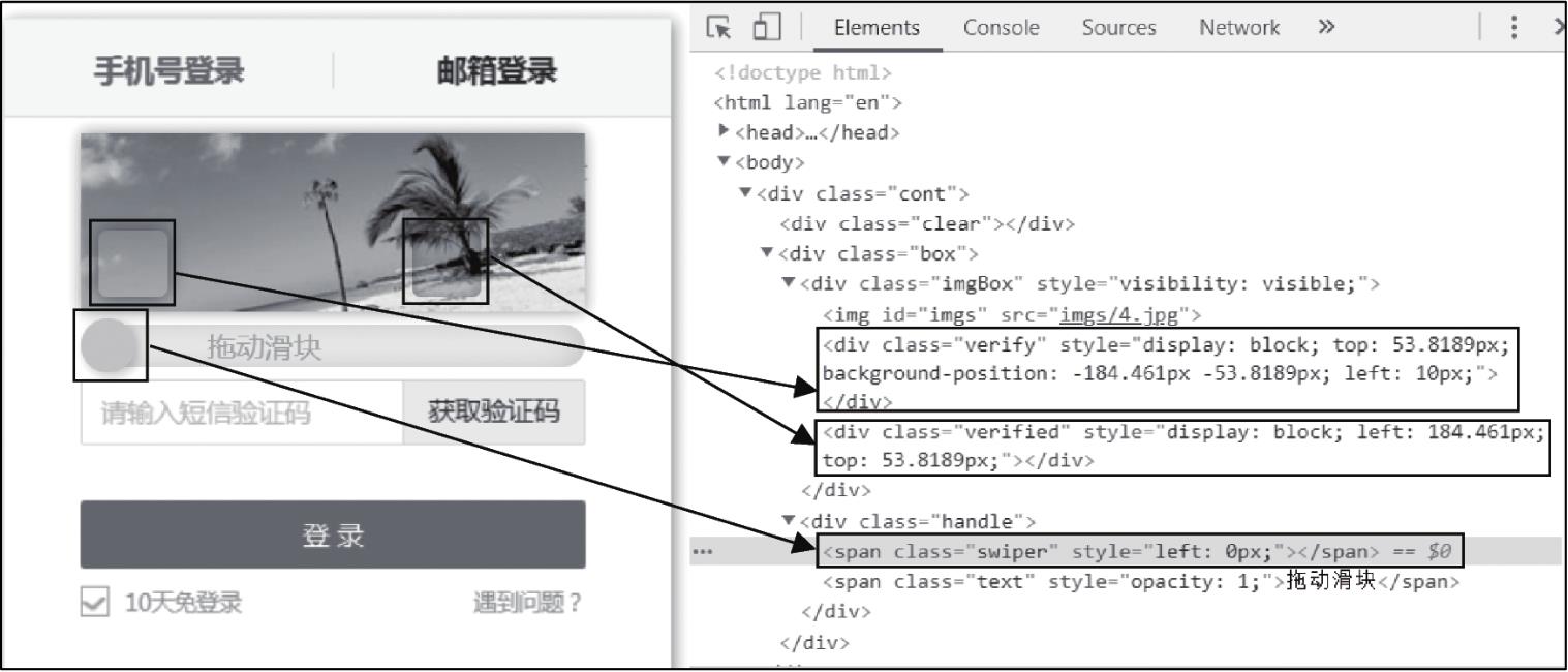 图1.13 确定滑动拼图验证码的HTML代码位置