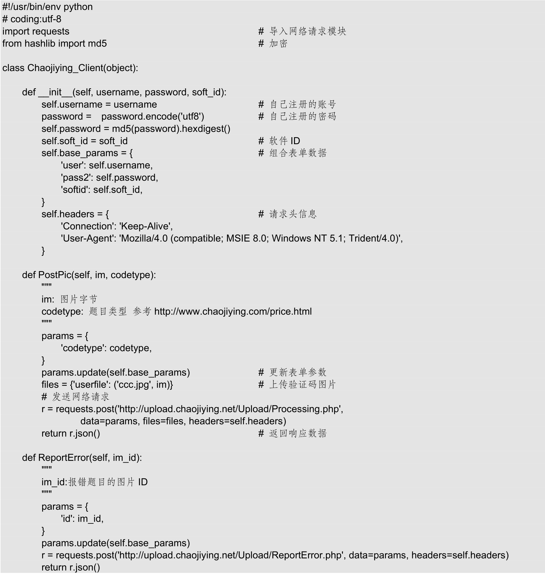 (5)使用PyCharm打开下载的示例代码。该示例代码默认已经封装了识别验证码的功能,具体代码如下: