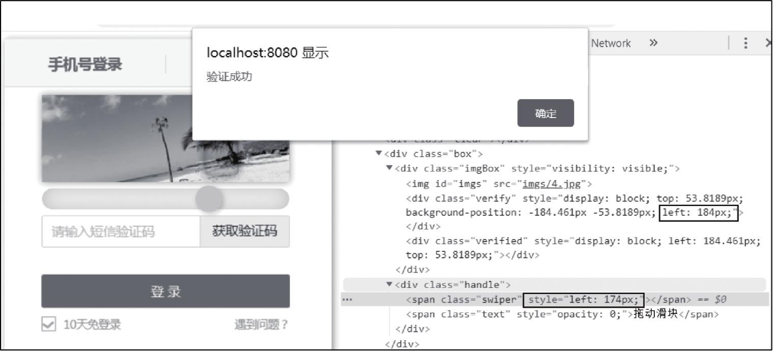 (3)拖动按钮滑块,完成滑动拼图验证码的校验,此时将显示如图1.14所示的HTML代码。