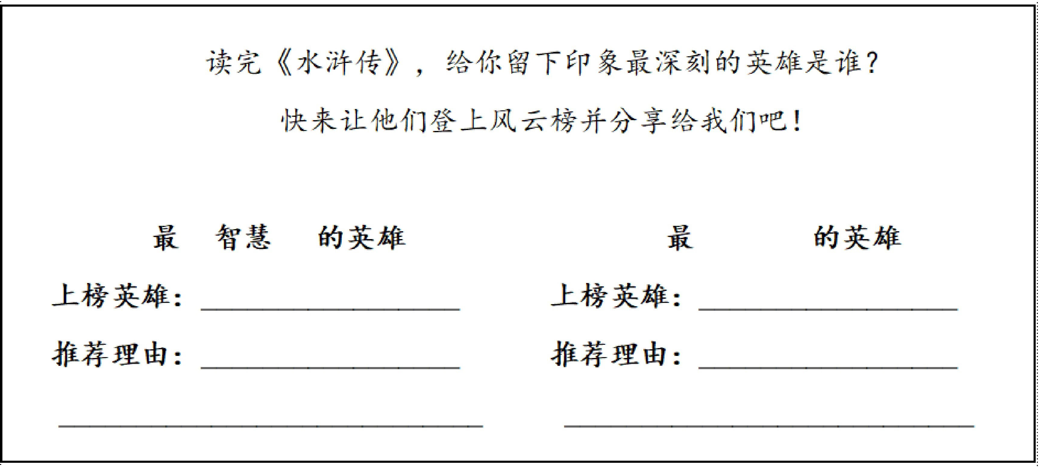 3.制作水浒英雄人物卡。