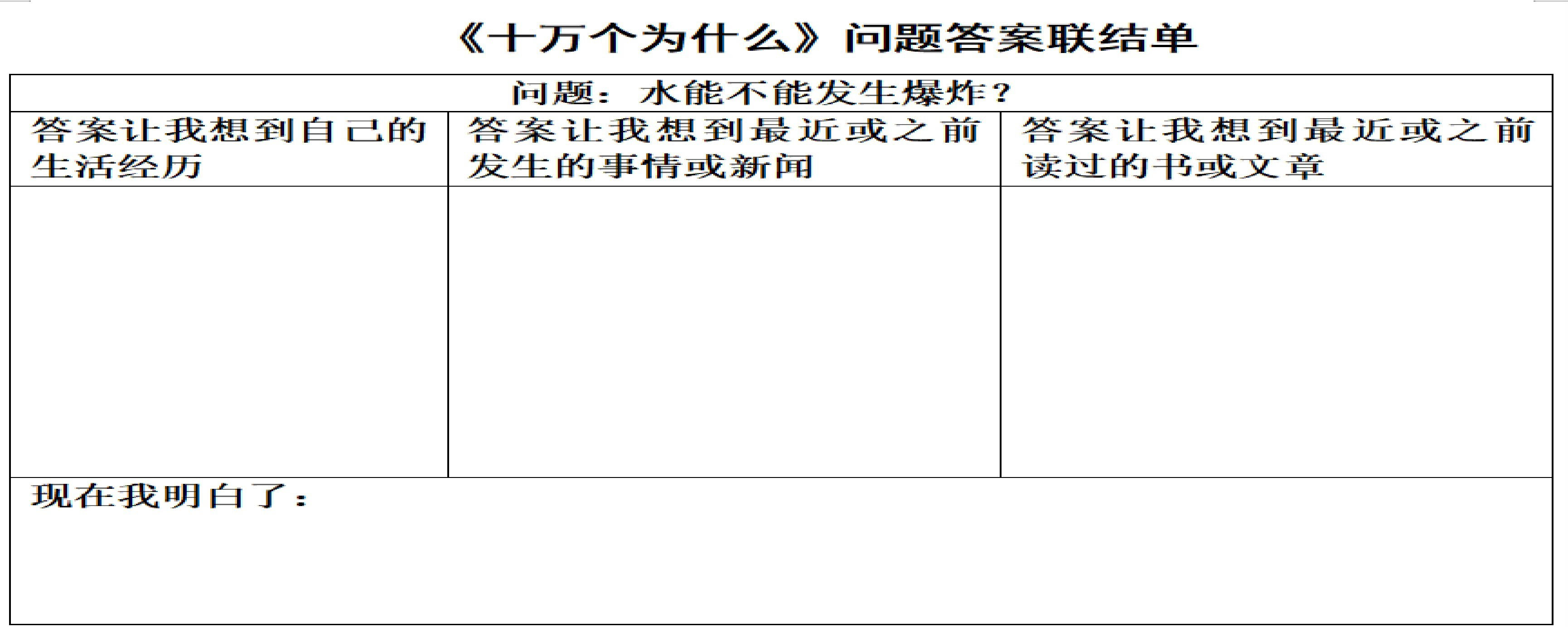 找到问题答案,阅读才走了一半,阅读需要走向你自己或你的生活经历。比如“水能不能炸毁房屋”的答案,让你产生哪些联想呢?