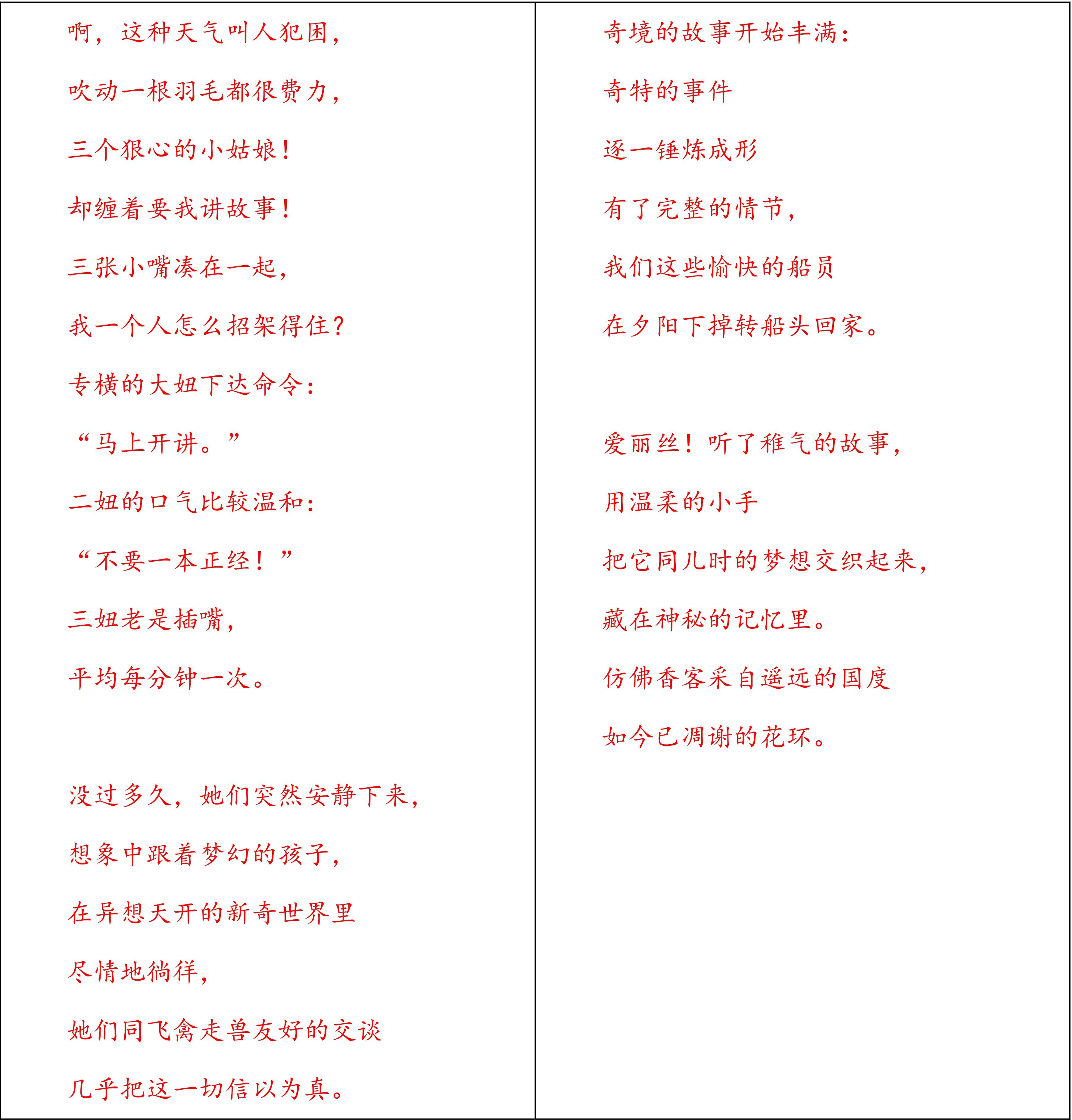 ①卡罗尔特地写过一首诗,诗中讲述了自己创作的缘由。(配乐,指名学生朗读。)