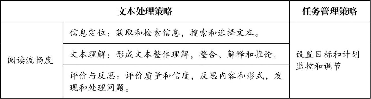 在此框架中,阅读理解作为阅读能力的组成部分,由信息提取、策略运用和多元思维组成。由此可见,阅读理解是基于信息提取又超越信息提取,与策略的应用直接联系起来的。