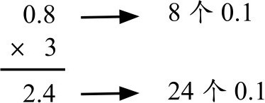 师生:0.8表示8个0.1,8个0.1乘以3就是24个0.1,24个0.1就是2.4。(师边讲述边板书)