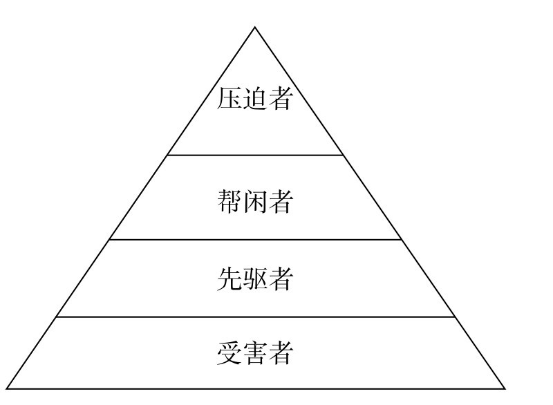 教师充分肯定学生的分类标准,并在学生分类的基础上进一步提炼,用金字塔图形展示自己的分类,并让学生对照金字塔图,让《呐喊》中的人物进去坐一坐。