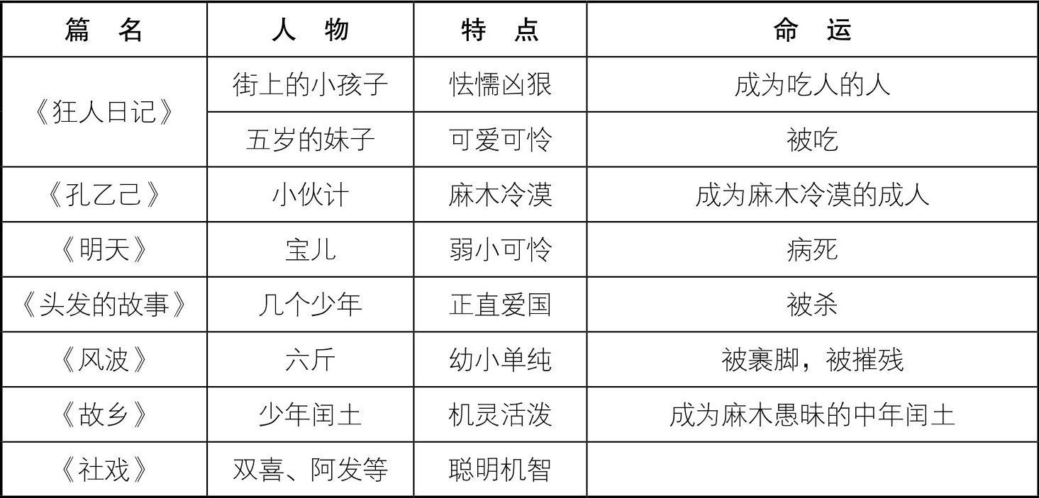 合作探究三:鲁迅通过《呐喊》揭示国民性的种种鄙陋,他想要“疗救”什么?请从《呐喊》中孩子的命运这一角度进行探究。
