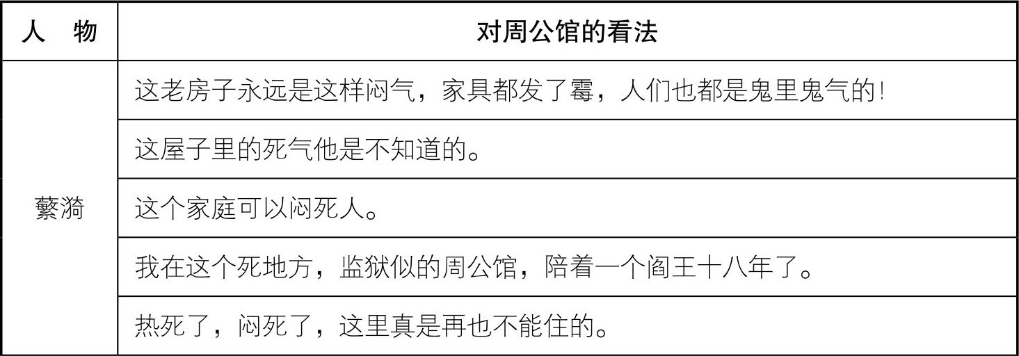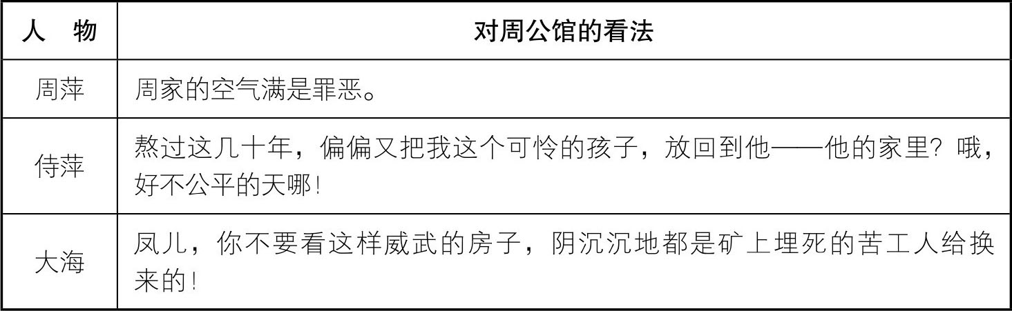 附:《雷雨》中人物对周公馆的看法列表
