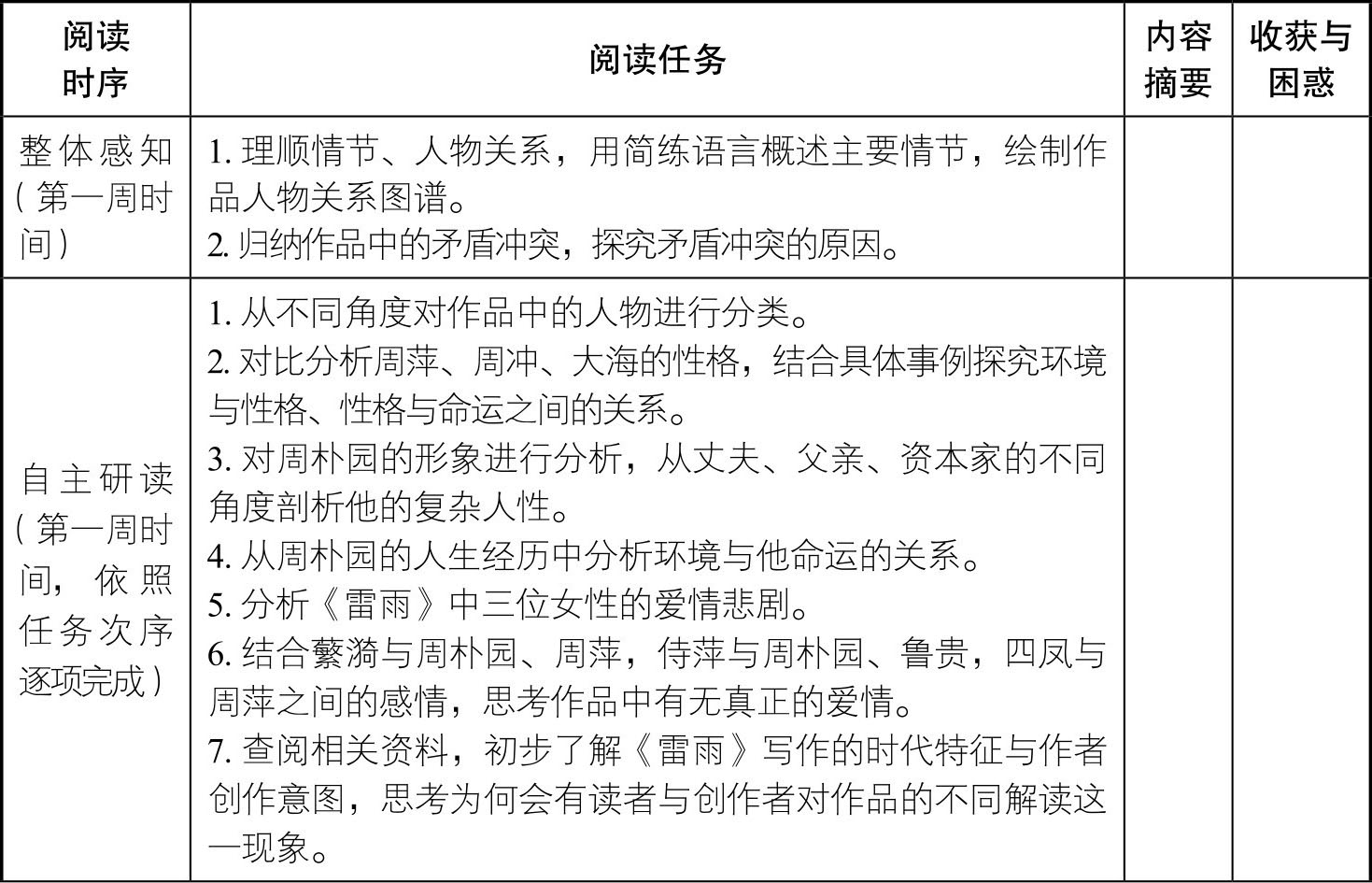 3.《雷雨》阅读任务清单: