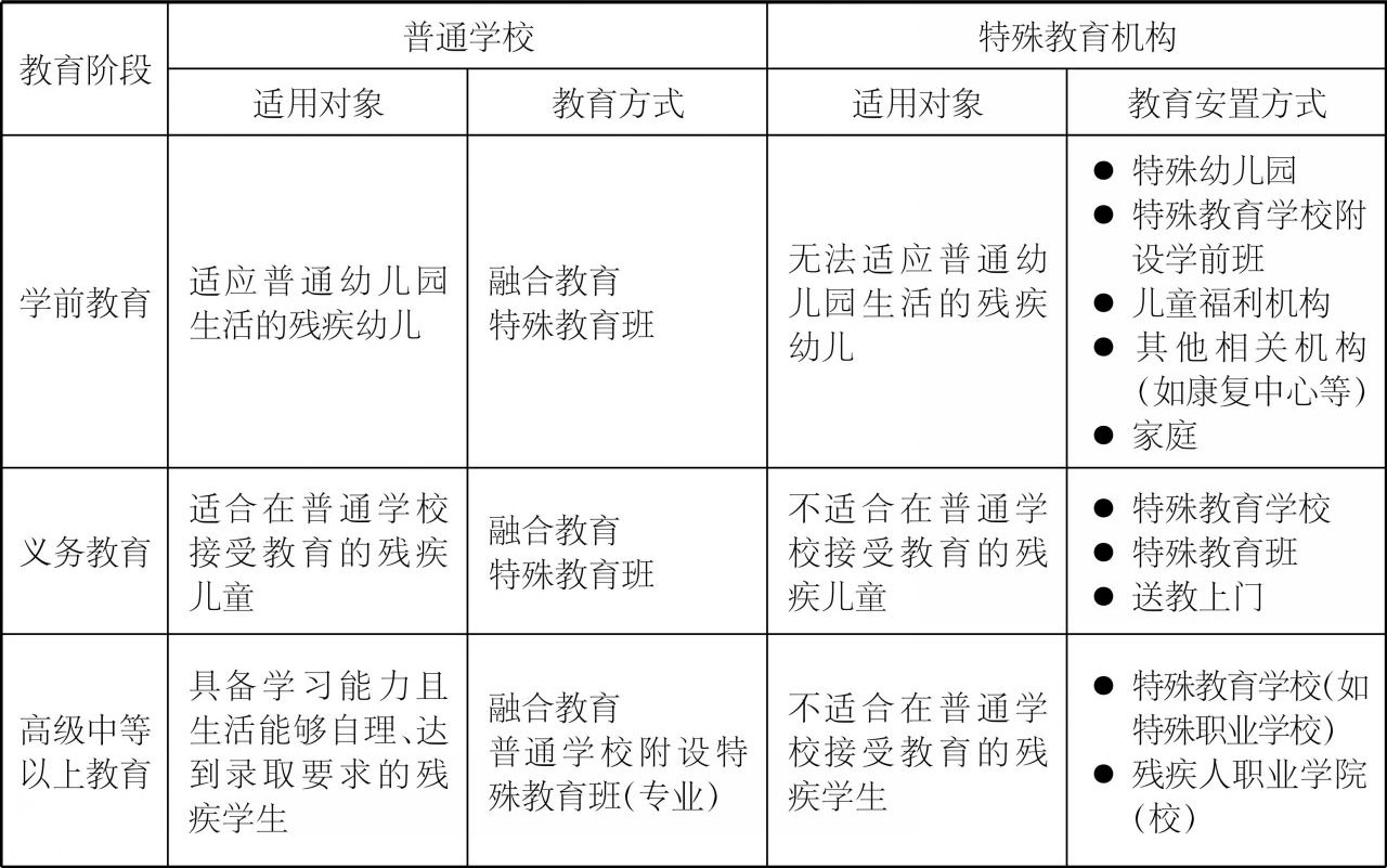 [《中华人民共和国残疾人保障法》(第18条),《残疾人教育条例》(第3-9条)]