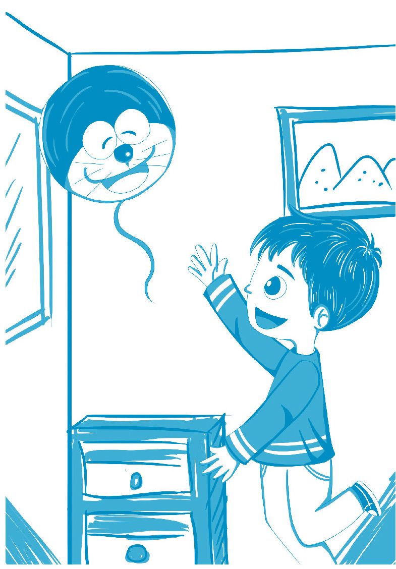 小鹏的姑姑出差回来,给小鹏买了一个大气球,这个气球的表面画有3只很大的机器猫。姑姑知道小鹏很喜欢看动画片《机器猫》,特意选了这个气球。果然,小鹏拿到这个大气球的时候开心极了!
