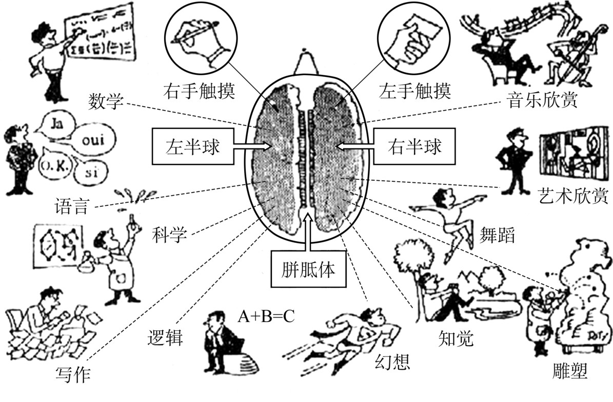 著名生理心理学家斯佩里(R. Sperry)对癫痫病人的裂脑半球功能的研究表明,大脑两半球在语言、空间组织能力、思维类型、感知觉、音乐、舞蹈等方面的分工不同,使得大脑某一半球会在某些特定方面成为优势半球,这种不对称被称为“大脑两半球功能单侧化”。斯佩里因此研究发现在1981年获得了诺贝尔生理学或医学奖。
