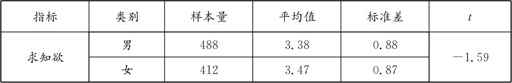 表3-4 不同性别儿童求知欲水平的平均数差异检验