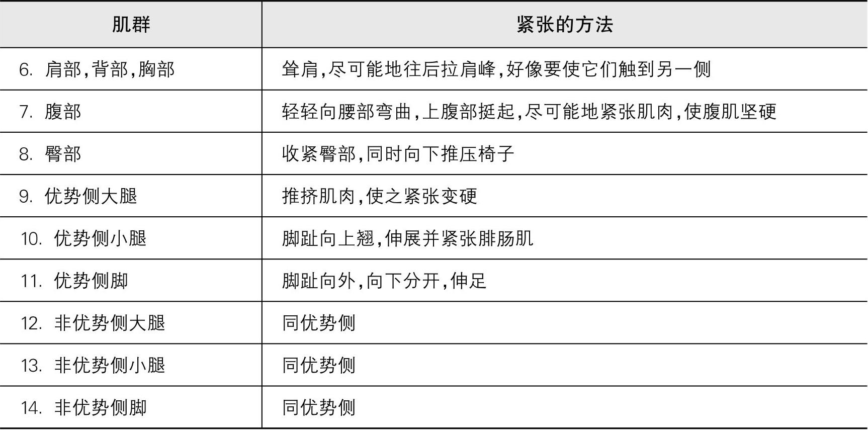 (13)在“扫描”的练习过程中,如果发现自己有点昏昏欲睡,可以用枕头把头部垫得高一些,张开自己的眼睛或者坐起来练习,这样就会稍稍清醒一点。