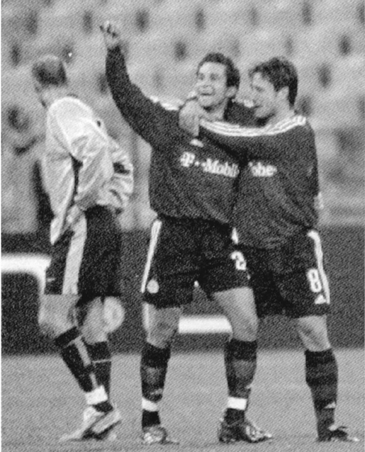 插图7-1 人心不同,各如其面(欧洲冠军杯上拜仁队哈桑·萨利和哈米季奇庆祝进球)