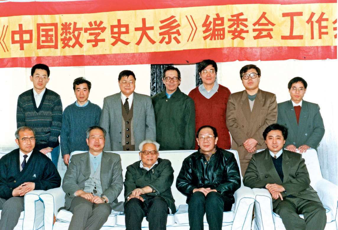 与吴文俊先生(前排左三)及《中国数学史大系》编委会成员在北京合影(1996)