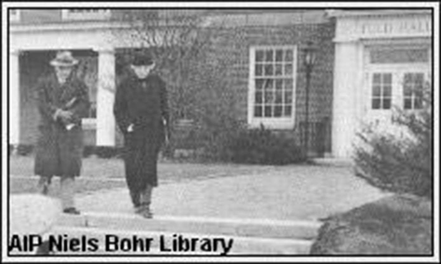 图37 这是爱因斯坦和玻尔(Bohr)在Fuld Hall门口经过