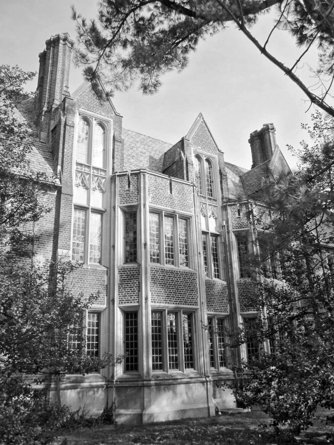 图41 与夫人。从Fuld Hall南面草坪上摄大楼全景