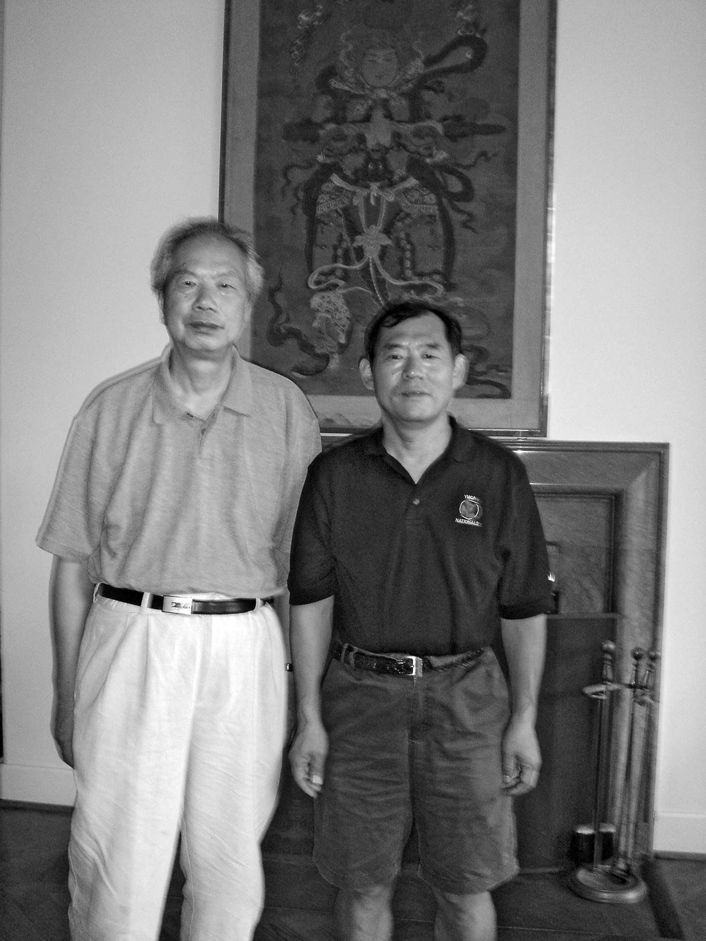 图40 与张文耀教授。休息室壁炉上方的画是东方古代武士像