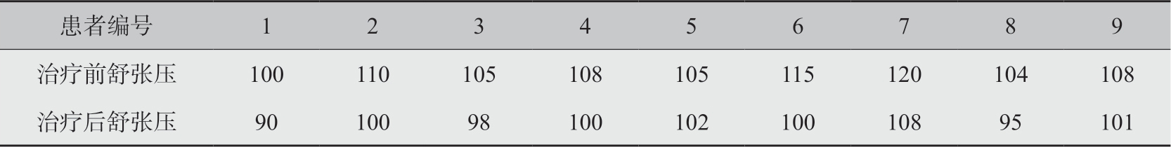表3-1 9名患者治疗前后的舒张压数据(mmHg)