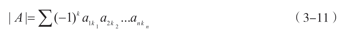 行列式是方阵的一个重要数值特征,记作| A |或det( A ),行列式公式见式3-11。