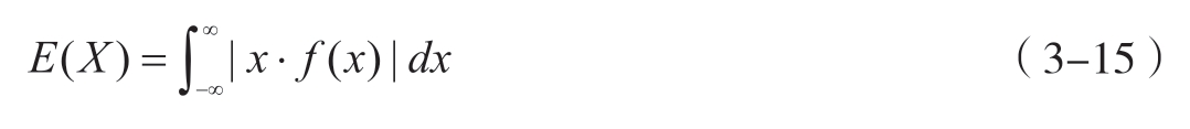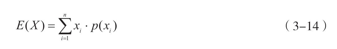 期望是随机变量取值的概率加权平均值,用于表征随机变量的集中趋势。对于离散型随机变量 X ,其期望 E ( X )的定义如式3-14所示;对于连续型随机变量 X ,其期望 E ( X )的定义如式3-15所示。