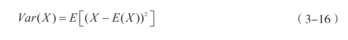 方差是随机变量 X 与其期望 E ( X )之差的平方的期望,用于描述随机变量的离散程度(式3-16)。