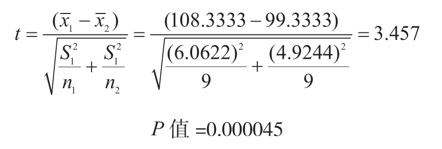 若以显著性水平α=0.05为临界,查看 t 值表,得到 t 值对应的临界值t cri =2.306。显然, t >t cri 且 P <0.05,表明结果拒绝H 0 ,接受H 1 ,即该中药制剂对高血压患者的舒张压有显著干预效果。