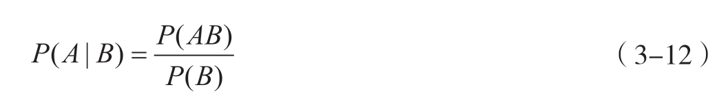 (1)条件概率 指在某一事件 B 已发生的条件下,事件 A 发生的概率,用 P ( A | B )表示。其计算公式如式3-12。