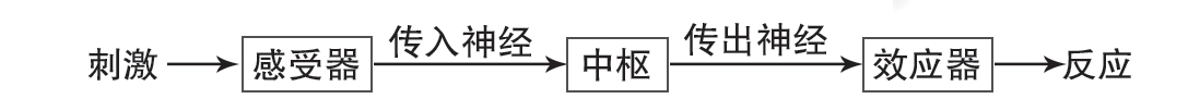 机体内许多生理功能是由神经系统的活动调节完成的,称为神经调节。反射是神经调节的基本形式。反射活动的结构基础为反射弧,它由五个基本成分组成(图1-2),即感受器、传入神经、中枢、传出神经和效应器。反射弧任何一个部分受损,反射活动将无法进行。