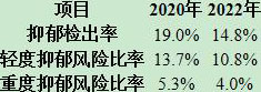 近年来,由于互联网的普及,儿童和青少年的心理健康问题得到了更多的关注。近几年来,中国科学院心理研究所国民心理健康评估发展中心对全国3万多名10~16岁的中小学生的抑郁风险进行了几次评测,数据很不乐观。下方为2020年和2022年的数据。