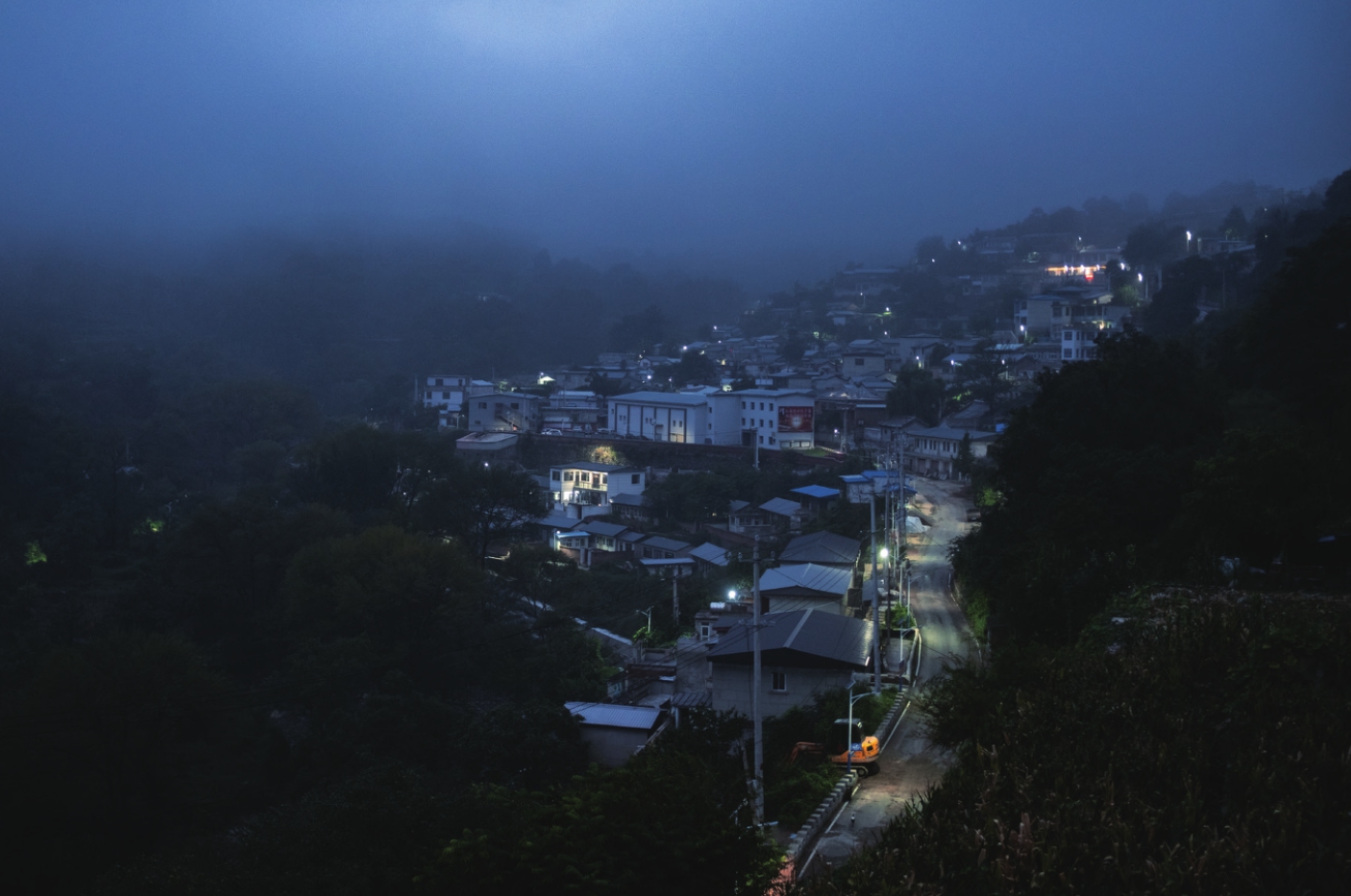 ■ 这张照片是我们手持相机在入夜时拍摄的山村全貌,没有使用三脚架辅助拍摄,借助于机身的5轴防抖功能,捕捉到了弱光下的美妙一刻