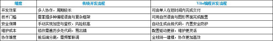 表1-1总结了传统开发流程和Vibe编程开发流程的差异。