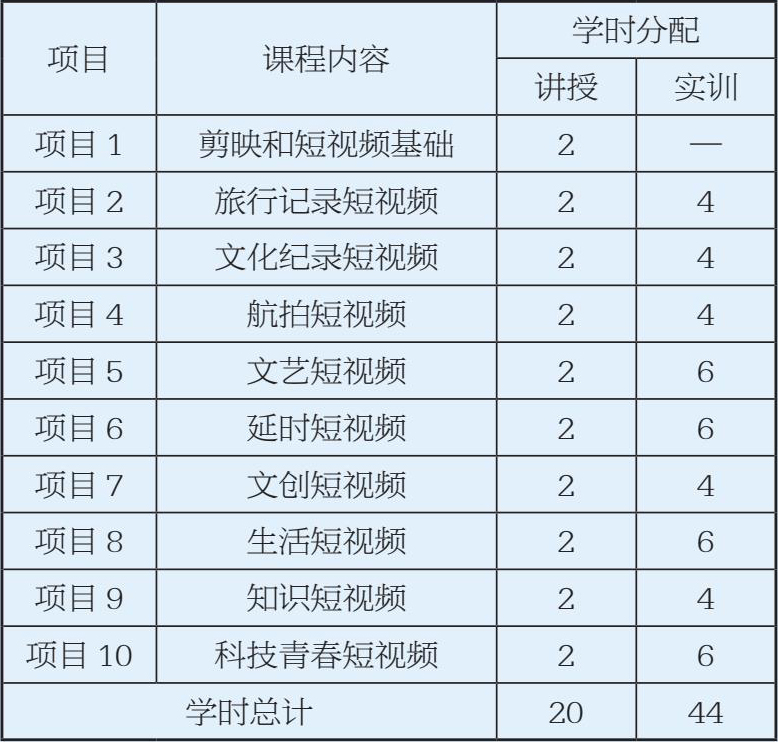 本书的参考学时为64学时,其中实训环节为44学时,各项目的参考学时参见下面的学时分配表。